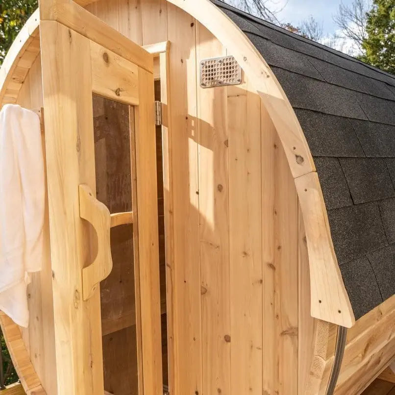 The Dundalk Leisurecraft Canadian Timber 4 Person Harmony Outdoor Traditional Barrel Sauna offers a serene escape right in your backyard, perfect for relieving stress and rejuvenating your spirit. Built from durable Eastern White Cedar, this sauna features a unique barrel design that efficiently retains heat while ensuring great airflow, making it comfortable for you and up to three friends. Easy to assemble with pre-cut materials, you can quickly enjoy the benefits of improved circulation and muscle recovery, along with the peace of mind that comes from its five-year warranty. Transform your outdoor space into a relaxing retreat for better well-being and a healthier lifestyle.