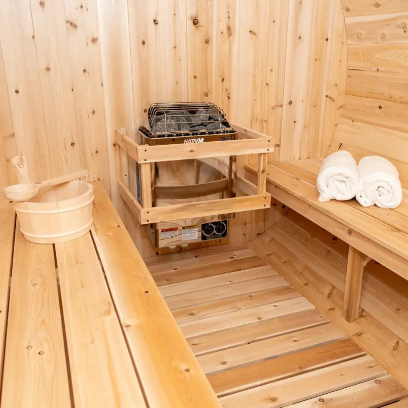 The Dundalk Canadian Timber 4 Person Serenity Outdoor Barrel Sauna offers you a private escape right in your backyard, allowing you to unwind and connect with friends or family in a cozy setting. With its durable Eastern White Cedar construction and efficient heating, you can enjoy the relaxing warmth and health benefits, all while detoxifying and relieving stress. Its easy assembly means you can set up your perfect retreat without hassle, ensuring years of enjoyment and well-being in your outdoor space. Whether you're soaking away tension or entertaining, this sauna transforms your outdoor experience into a tranquil haven.