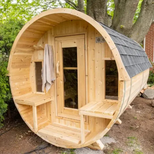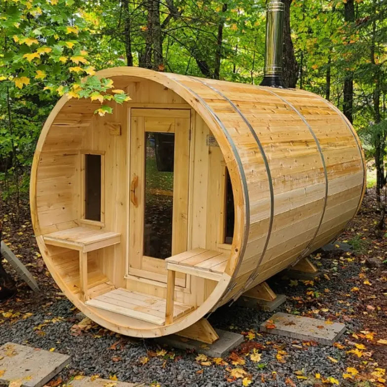 The Dundalk Canadian Timber 6 Person Tranquility Outdoor Barrel Sauna is your solution for creating a relaxing retreat right in your backyard. If stress relief and improved well-being are what you seek, this sauna offers quick and efficient heating, allowing you to unwind with friends and family in just 20 minutes. Featuring durable cedar construction and a spacious design for up to six people, it invites quality time together while also promoting health benefits like better circulation and muscle relaxation. Enjoy the beauty and functionality of a sauna crafted to withstand the elements, making it a lasting addition to your outdoor space.