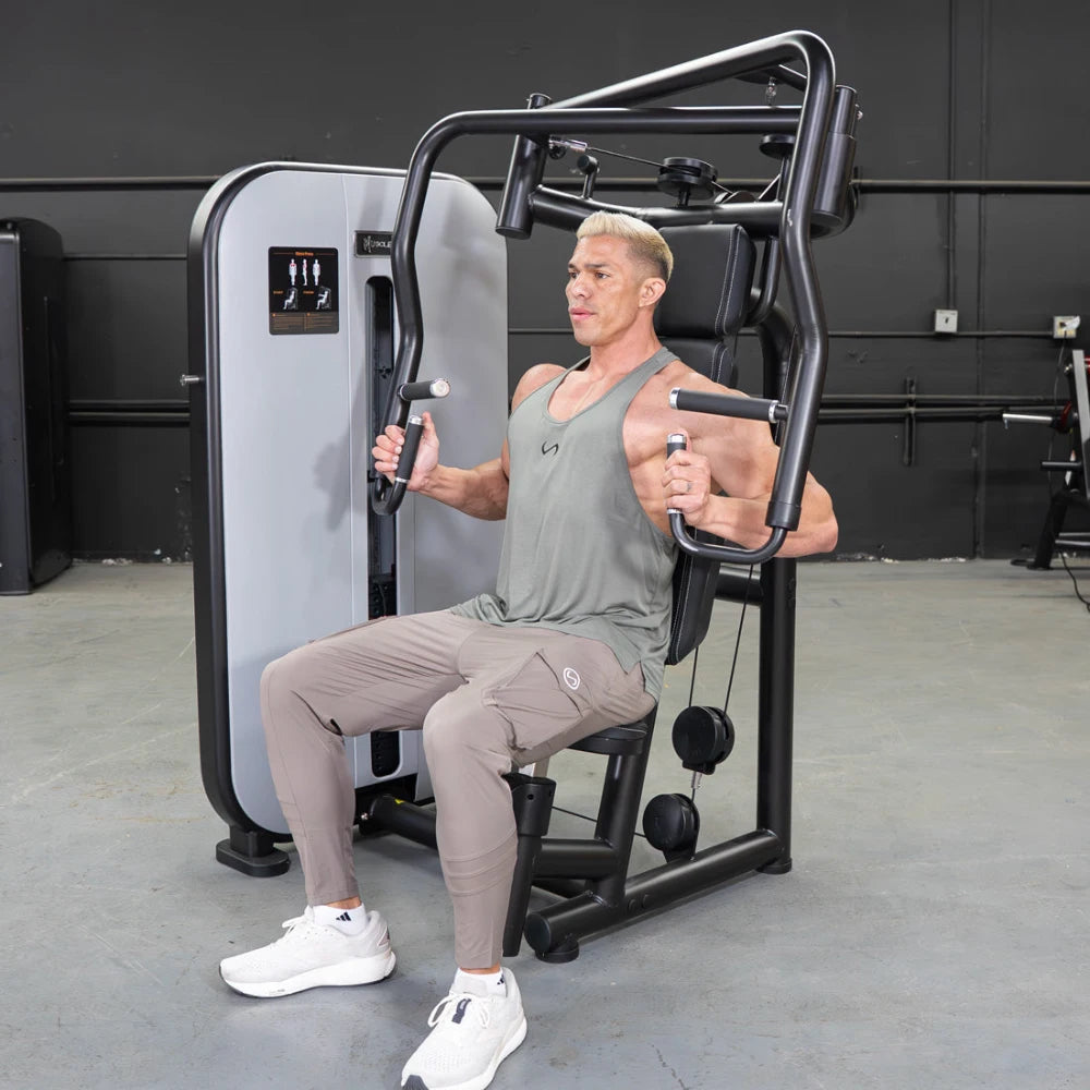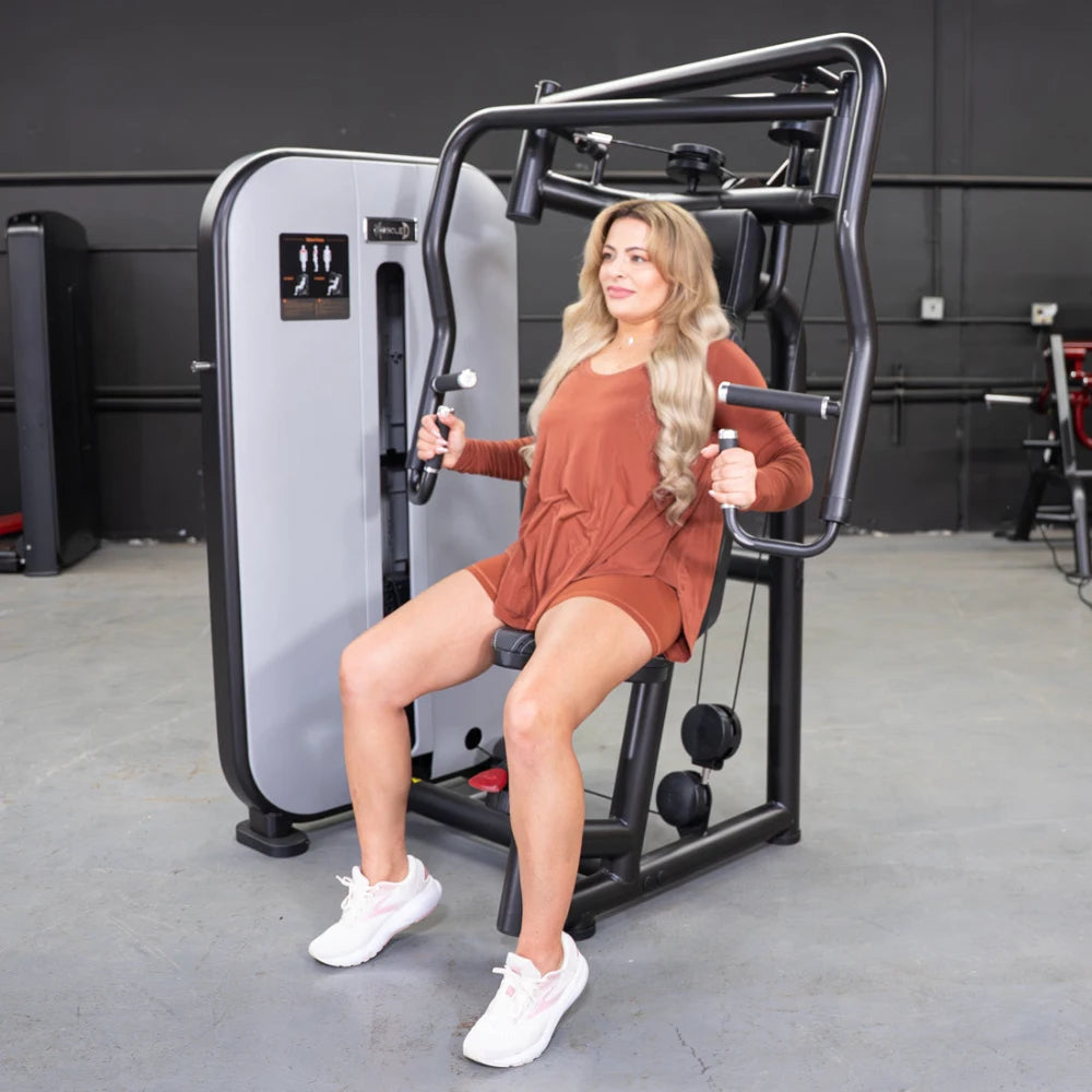 The Muscle D Fitness Vogue Chest Press Machine is your key to transforming your upper body workouts with precision and comfort. If you're looking to sculpt your chest effectively, this machine's unique converging motion and customizable features let you focus on building strength while providing a smooth and engaging experience. Designed for everyone from beginners to seasoned gym-goers, the Vogue Chest Press is your ultimate tool for achieving your fitness goals.