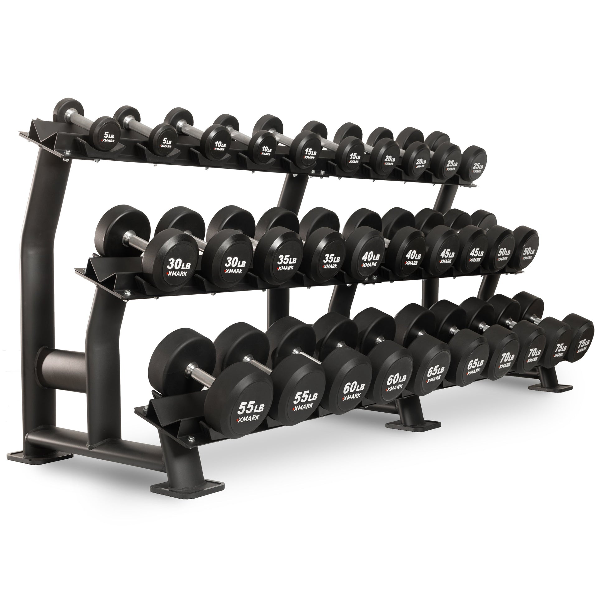 XMARK Round Commercial Urethane Dumbbells (5-50 lb and 5-75 lb Sets)