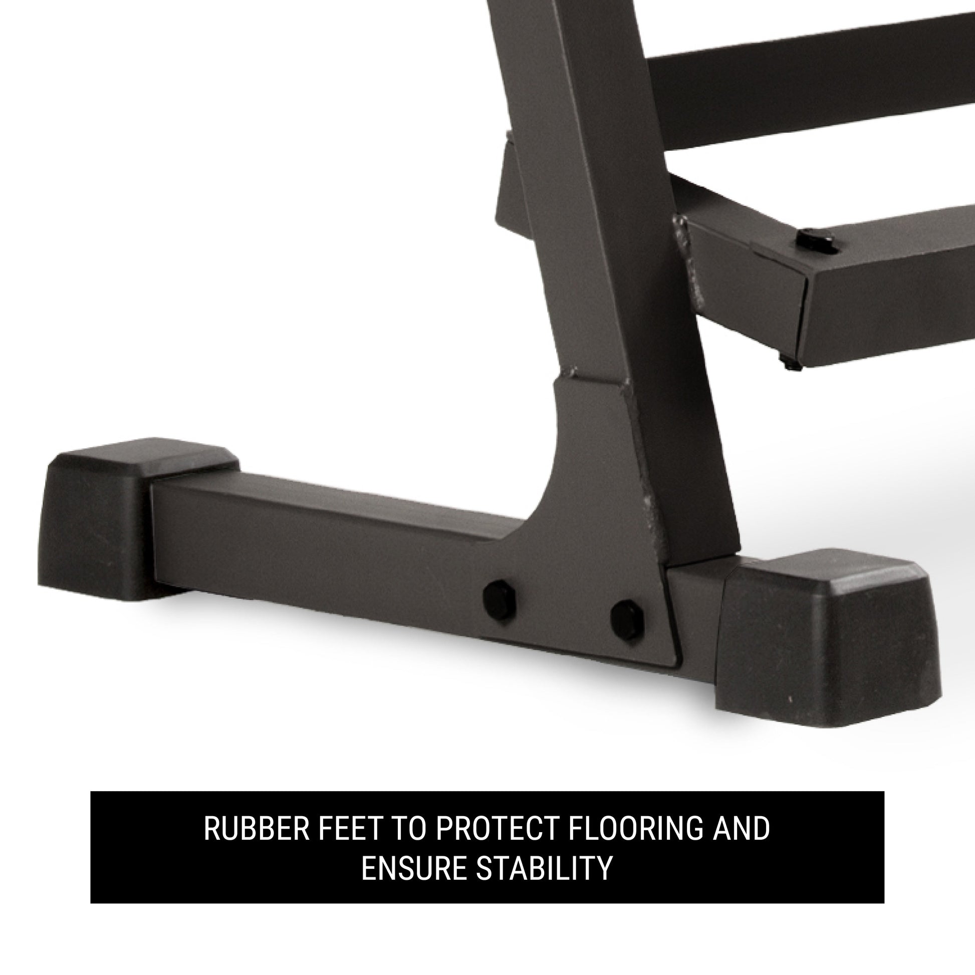 The XMARK 2-Tier Dumbbell Rack is a sturdy, space-saving solution for organizing your gym. Built from premium steel, it securely holds up to 450 pounds of weight. Its compact 2-tier design optimizes floor space and enhances any gym's aesthetic with its sleek, modern appeal. This rack ensures dumbbells are securely stored and offers quick, hassle-free assembly.