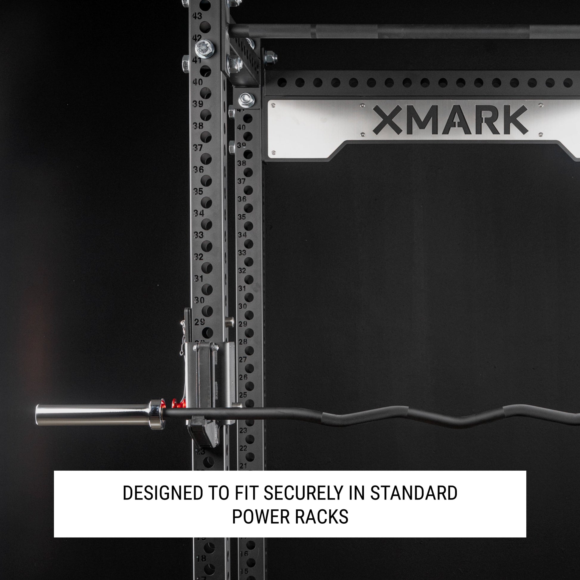 The XMARK Convict 6ft Rackable Curl Bar is engineered for optimal performance and durability. This 74-inch rackable curl bar, featuring a 52-inch shaft length, fits perfectly in standard power racks, offering versatile workout options. It boasts a knurled grip for secure handling, rotating sleeves to reduce wrist strain, and a high-strength steel construction for long-lasting use. Compatible with Olympic-sized plates, it ensures quick loading and enhanced muscle engagement to help you achieve exceptional fitness results.